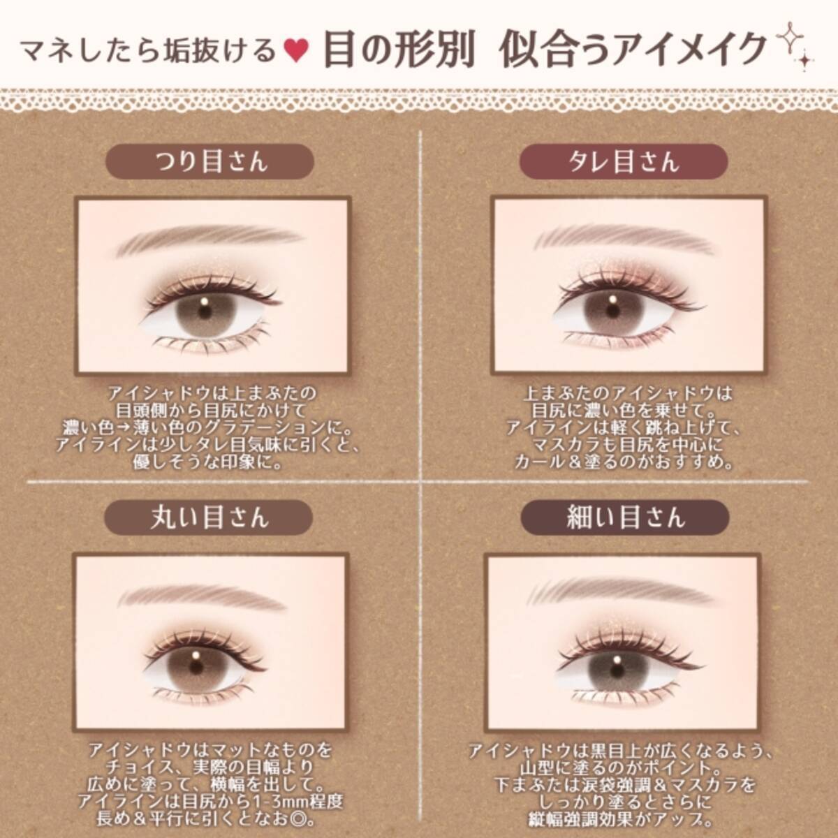 タレ目 つり目 細い目 丸目 目の形別 垢抜けアイメイクのコツ 美容ちゃんねる